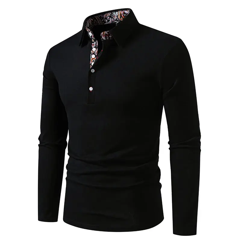 Casual Polo Shirt Men Fashion Paisley Color Block